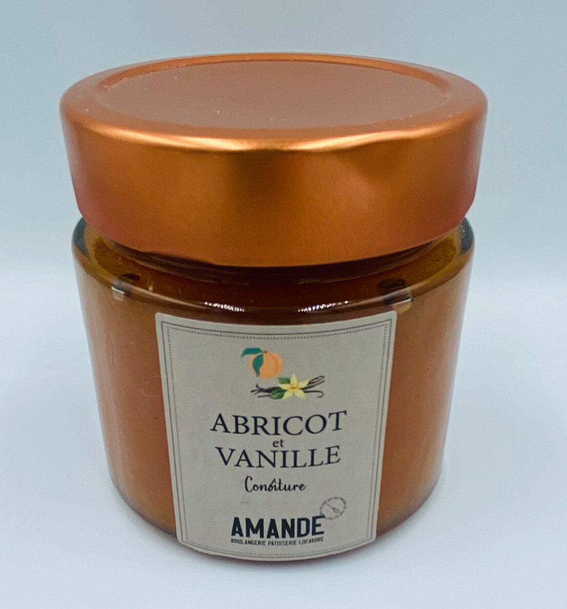 Abricots, vanille gousse de Madagascar, sucre, pectine de fruits, jus de citron.