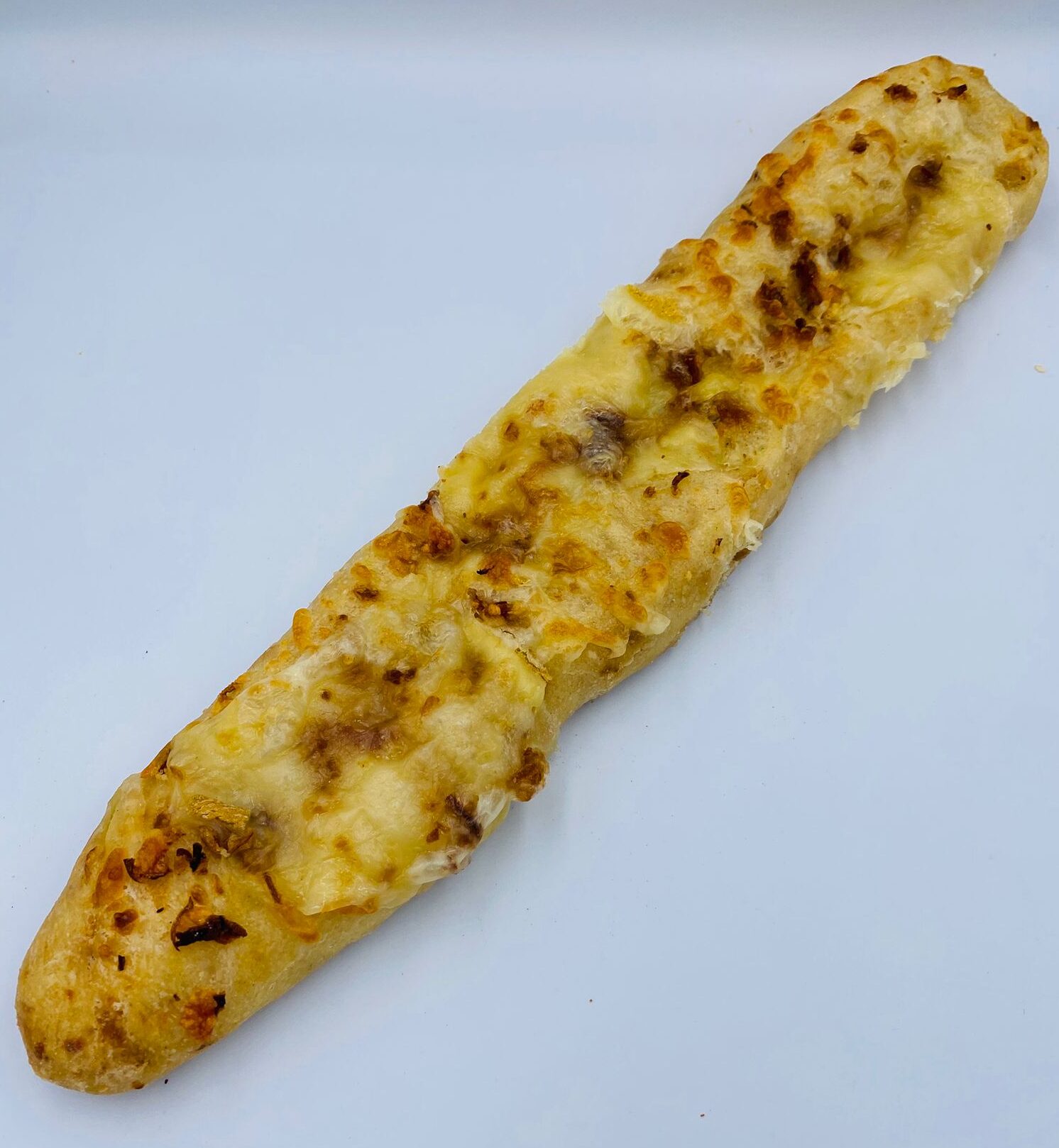 Baguette apéro trois fromages, fromage à raclette, bleu, mozzarella et oignons frits